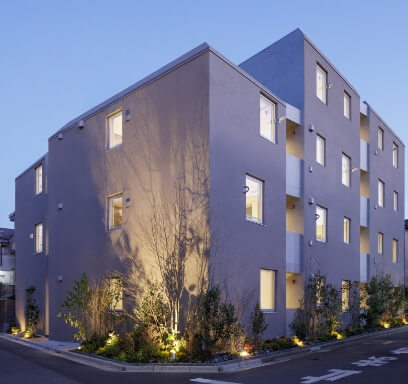 緑豊かな富ヶ谷の特性を活かすため、あたかも昔からそこにあったかのような素材感、シンプルと多様性が共存する物件コンセプトとし、居住者間の交流が自然発生する場の提供を目指しました。