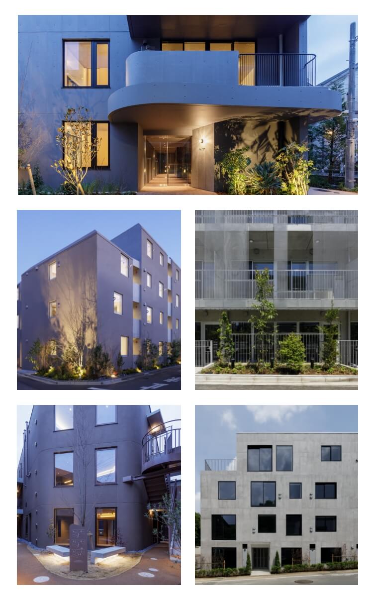 周辺環境は渋谷区の閑静な住宅地で2、3階建ての建築が密集した状態で建ち並んでいる丘状の高低差のある敷地である。密集して隣家があることから、光や風を取り入れるコモンスクエアを中心に配し、全住戸共有のアプローチ空間となっている秀逸な計画である。地下一階、地上3階建てとし、17戸の住戸は一部メゾネット住戸がある画一的でない多様な平面、断面計画とし、開口部は周辺の庭の環境を取り入れながら内部空間が明るく開放的な暮らしができるように丁寧に考えられている建築である。今後もコモンスクエアを中心に帰属意識が育まれ、良好なコミュニティが育つことを期待している。
